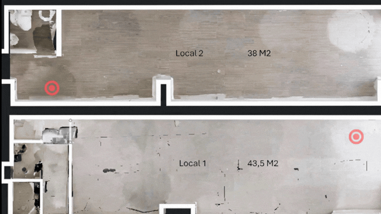 - Área Principal unificada: 81.5 m² , local 1 de 43.5 m2 y local 2 de 38 m2 de espacio adaptable.